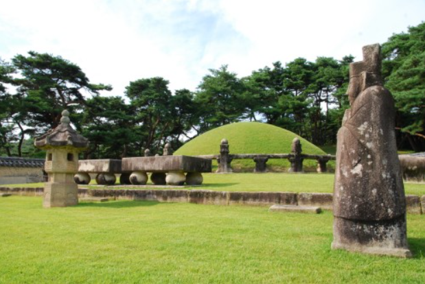 하며 풍수지리 사상에 따라 주산을 뒤로하고 산의 허리에 봉분을 조영하였고 좌우측에 청륭, 백호,를 이루고 남쪽으로